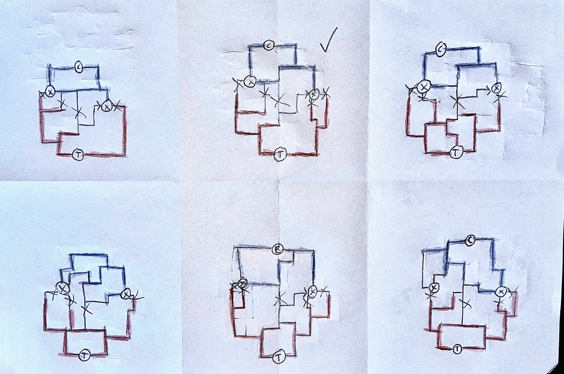 Presented here are all the versions of the layout that were tested through multiple playtests. Each round of testing generated feedback that directly informed the changes made in the following iteration. This continuous cycle of evaluation and refinement shaped the layout into its current version.