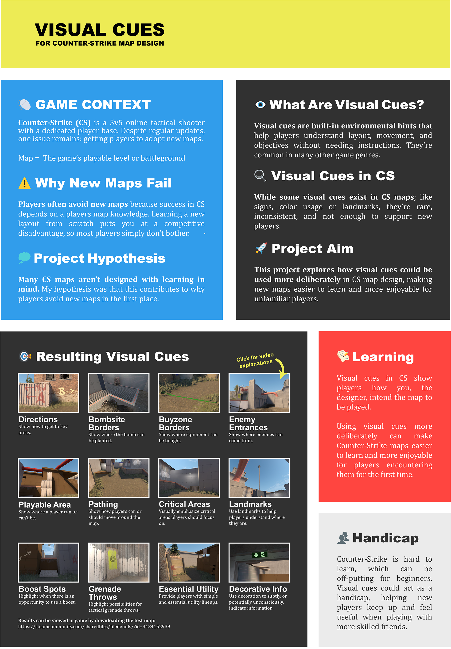 Parallel to the study, I created a Counter-Strike level to use for testing and implementation of the visual cues.